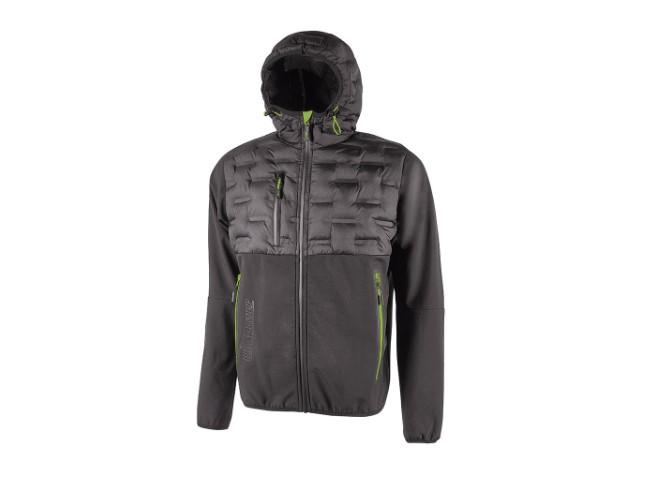 Chaqueta híbrida repelente al agua, transpirable y antiviento, extremadamente versátil e ideal para quienes realizan trabajos dinámicos en ambientes fríos o medio-templados, sin por ello sacrificar la libertad de movimiento. Cierre central con cremallera impermeable. Capucha fija y ajustable, puños elásticos. Chaqueta de plumón acolchado con tecnología sin costuras. Forro interior de nailon y microfibra con impresión serigráfica. Dos amplios bolsillos delanteros con cierre de cremallera fluorescente y un bolsillo en el pecho con cierre de cremallera impermeable. Dos amplios bolsillos interiores. Dobladillo contorneado y ribete fluorescente en la espalda. Logotipo U-Power tono sobre tono